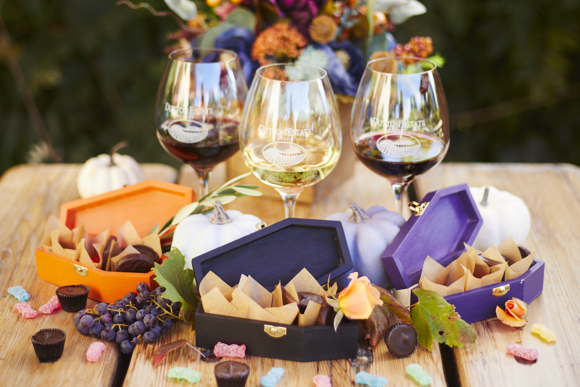 Join us for a spine-tingling, private wine tasting experience at Dutton Estate, where you’ll indulge in four of our finest wines plus our hard apple cider. You’ll savor each sip and explore the unique flavors of our expertly curated wine selection paired with a festive assortment of Halloween goodies (may contain nuts.)