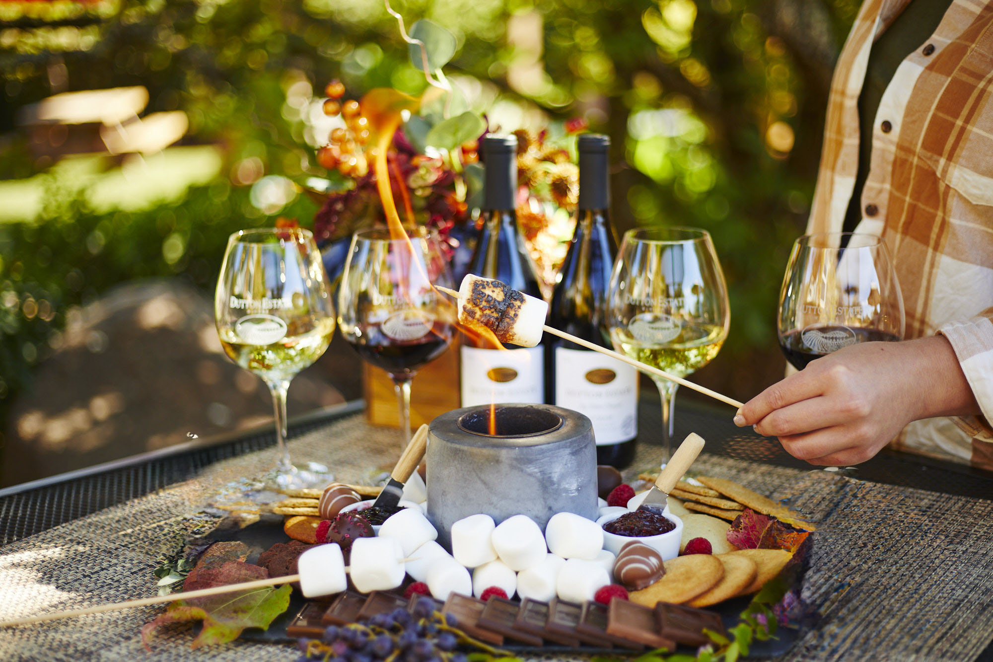 Immerse yourself in an irresistible DIY wonderland, where you’ll cozy up with exquisite wines while toasting marshmallows on your very own mini fire pit. Our hosts will guide you through four delectable estate grown wines, perfectly paired for your indulgence. Bask in the vineyard garden on a beautiful day or cozy up by our fireplaces in our charming tasting room.