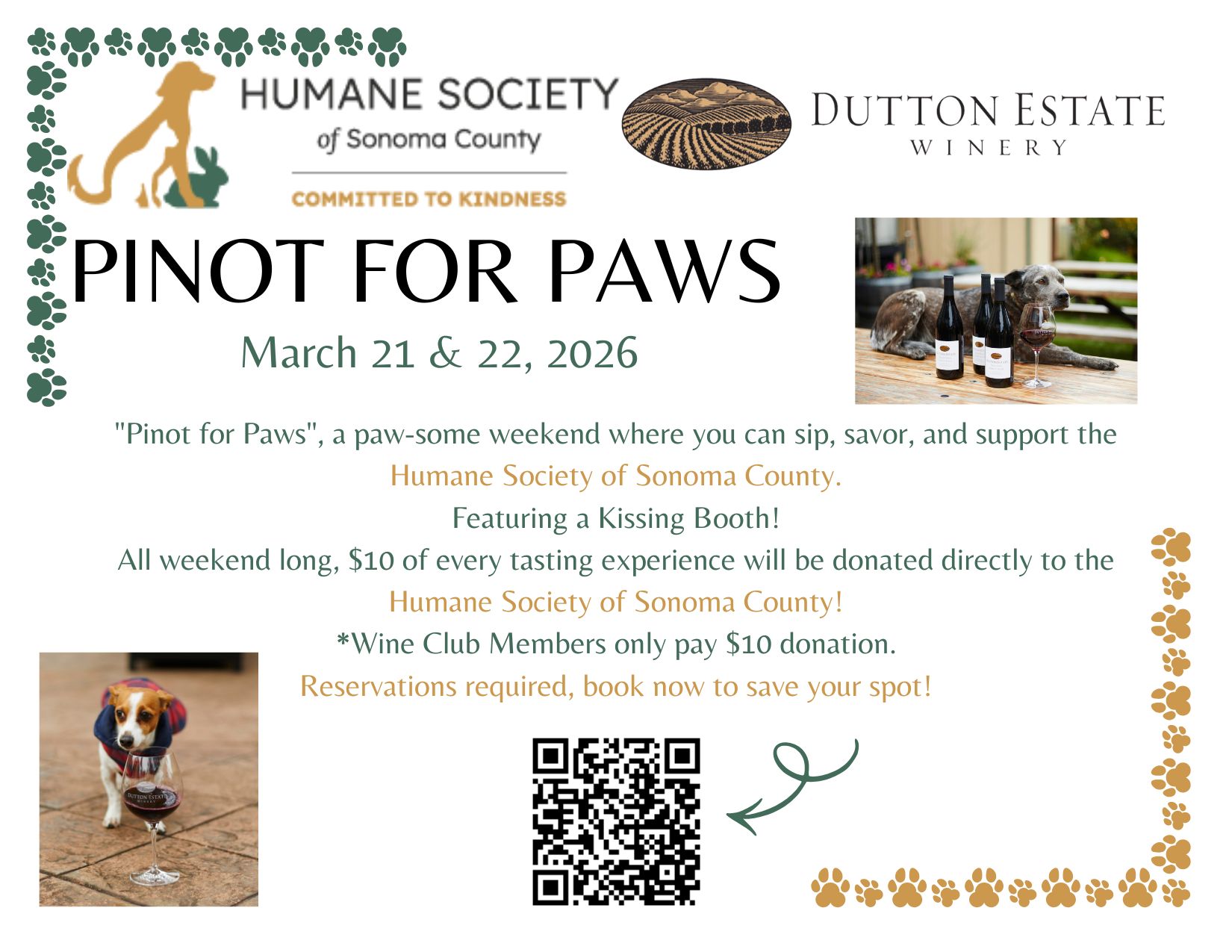All weekend long, $10 of every tasting experience will be donated directly to the Humane Society of Sonoma County!